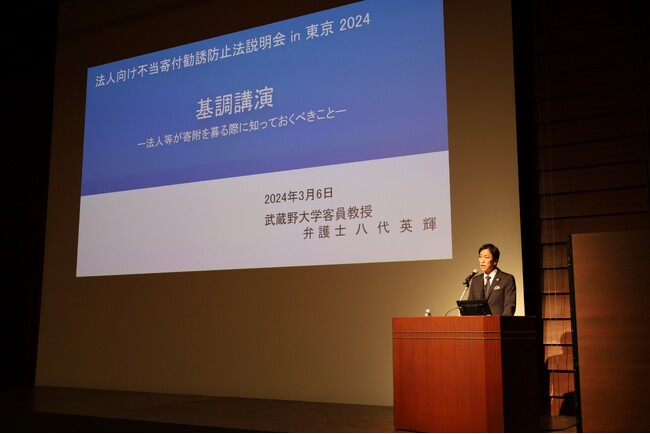 消費者庁は、法人等による寄附の不当な勧誘の防止等に関する法律についての説明会「法人向け 不当寄附勧誘防止法説明会2024」を大阪・福岡・東京の3会場とオンラインで開催いたしました。