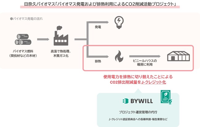 当該プロジェクトは、株式会社日奈久バイオマス(本社:熊本県八代市、代表取締役:岩原 正樹、以下「日奈久バイオマス」)が行う、バイオマス発電の排熱利用によるJ-クレジット創出です。