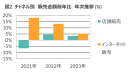 販売チャネル別で見ると、インターネットは金額前年比5%増となった(図2)。インターネットの成長率は店頭を上回ったものの、2022年までの2年連続二桁成長がストップし、2023年第二四半期以降、成長率が鈍化する動きとなった。また、店頭販売は金額前年比4%増と2022年に続き堅調に推移した。