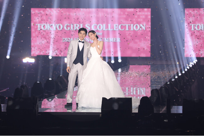TGC当日のステージでは、会場が暗転するとスクリーンに昨年11月に撮影されたこーくんのみの動画が映し出され、今からなごみにプロポーズをすることを告げると、客席から大きな歓声があがりました。そして、感動的なプロポーズ時の映像とともに、純白のウエディングドレスとタキシードに身を包んだ二人が腕を組んでランウェイに登場。ランウェイトップではこーくんが跪いて指輪を渡す演出もあり、会場はあたたかい拍手と祝福ムードに包まれました。