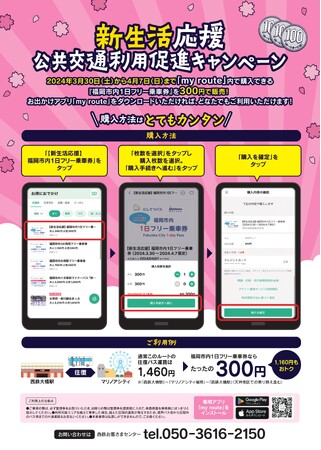 「新生活応援キャンペーン」を実施することで、福岡で新生活を始める皆さまに西鉄バスをご利用いただき、福岡市内の交通利便性を感じていただくとともに、「my route」で提供できるシームレスな移動を体験いただければと考えております。