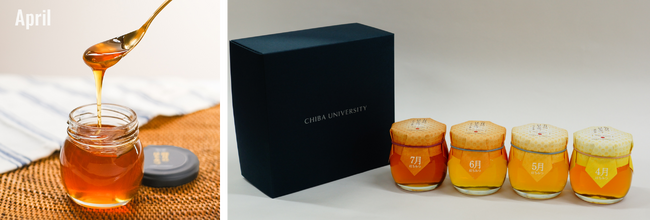 このような研究の副産物として得られたはちみつを月毎にボトリングし、商品化したものが千葉大学西千葉はちみつです。ミツバチが訪れている花の違いが各月のはちみつの味の違いとなっています。はちみつを通じて暮らしの周囲にある花に興味を持っていただき、生活と都市環境のつながりを感じていただくことを願っています。