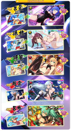 さらに、ナースの衣装に閃乱覚醒する「呂蒙」「孫権」やバニー衣装に閃乱覚醒する「孫策」のコラボカードも再登場いたします!