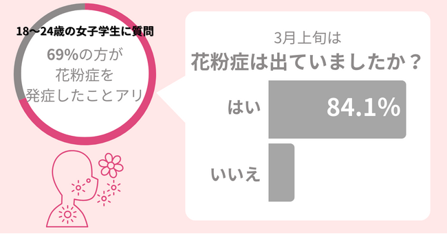 株式会社アースケアは18~24歳の女子学生100名に「花粉症」に関する調査を行いました。