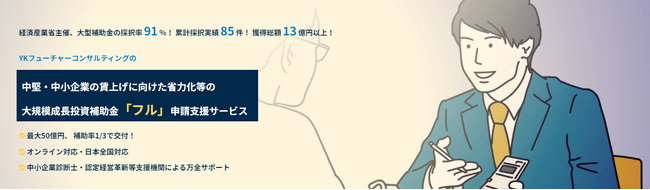 認定支援機関の株式会社YKフューチャーコンサルティング(本社:東京都渋谷区、代表取締役:河村裕司、以下YKFC)は、中堅・中小企業の賃上げに向けた省力化等の大規模成長投資補助金の「フル」申請支援サービスを提供することを発表しました。