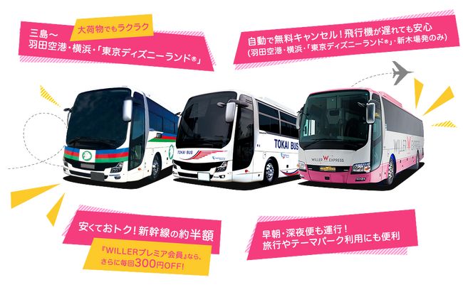 ・利用方法: 羽田空港・横浜・新木場・「東京ディズニーランド(R)」発 ⇒三島行 の便を予約サイト「WILLER TRAVEL」