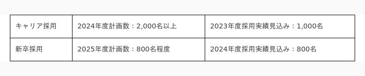 また、新卒採用では、ジョブを起点とした採用に大きく舵を切り、応募時に職種を定めないOPENコースを廃止し、職種確約コース(注3)、ジョブマッチングコース(注4)のみの募集とします。このうち、コンサルティング領域を牽引できる人材の新卒採用も計画しています。