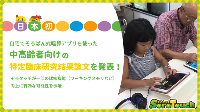 日本初!自宅でそろばん式暗算アプリを使った中高齢者向けの特定臨床研究結果論文を発表!そろタッチが一部の認知機能(ワーキングメモリなど)向上に有効な可能性を示唆