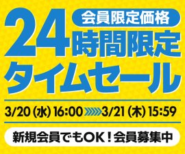 ※会員限定価格 24時間限定タイムセールの実施期間は、3月20日(水)16時から3月21日(木)15時59分までとなります。