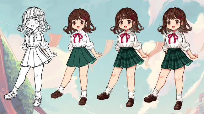 今回のキャラクターメイキング動画では、主に主人公である香菜のデザインが出来上がっていく過程を紹介しており、好評であれば他のキャラクターのメイキング画像も作っていきます。