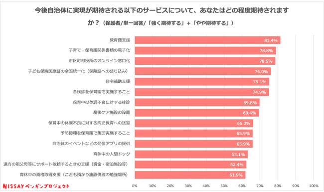 ┗ 保護者、保育所双方が「金銭的な支援や日常的な利便性向上に関するサービス」を自治体に期待。