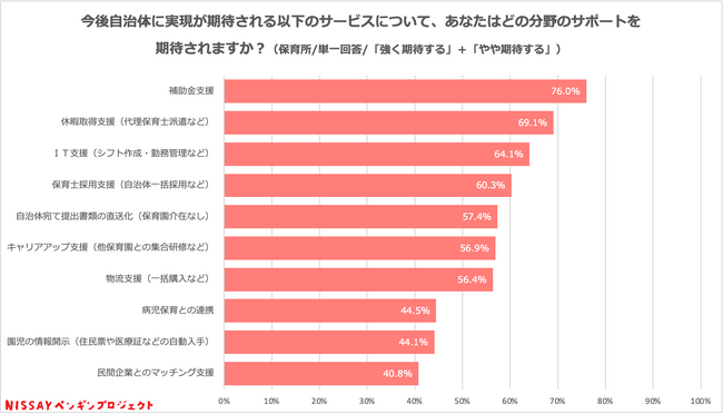 Q.今後自治体に実現が期待される以下のサービスについて、あなたはどの分野のサポートを期待されますか。ご自分のお気持ちにあてはまるものをお知らせください。(保育所)