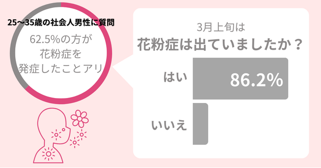 25~35歳の社会人男性に調査!62.5%が花粉症を発症したことあり。