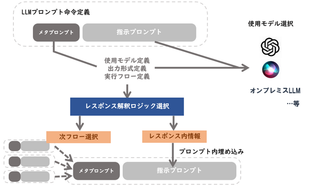 本環境は、令和AIが展開しているソリューション製品「SnippetBox」で使用されているプロンプト実行ロジックを発展させたもので、プロンプトのリストをプログラムにおける命令列とみなし、内部的にもつ仮想スタックポインタ/仮想レジスタによりプロンプトを順次実行するシステムと、プログラムの制御命令に相当するメタプロンプト命令セットからなります。