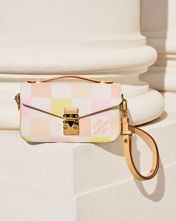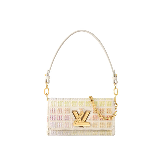 ビーズ刺繍を施したレザー製のこの上なくコンパクトなバッグ「ツイスト WEST」。メゾンを象徴するダミエ・パターンをパステルカラーのグラデーションバージョンで仕上げました。必需品をすっきり収納できるアイテムは、取外し可能なストラップとチェーンでさまざまな持ち方を楽しめます。