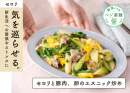 セロリの豊かな香りには、ストレスを和らげるリラックス効果があり、まるで“食べるアロマ”のような野菜です。新生活に向けて何かと落ち着かず、気が高ぶりやすいこの時期の強い味方。体の熱を冷ます作用もあり、ストレスからくるイライラやほてりなど、体に熱がこもっていると感じたら「セロリと豚肉、卵のエスニック炒め」を食べて心身共にリラックスしましょう。