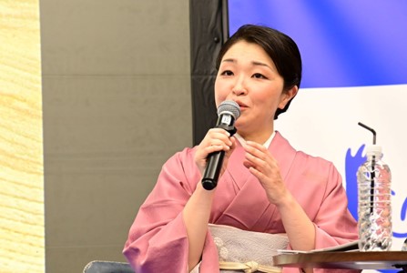 「海ノ民話アニメーションを観て、その土地の特徴的な地形、自然現象を知るとともに、“そこに神様がいる”と感じる日本人の心や、海から流れ着くものに豊かさを覚えていた先人たちのことを思いました。民話は、その土地の人たちにとって“誇り”となっていることがベース。語り継がれる中で、節をつけて義太夫になったり、説教の部分が抜け落ちて恋愛ストーリーになったり。演出や、口調の面白さ、言いやすさも必要なのかなと感じます。」と小説家視点で話しました。