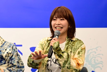 また、災害をテーマにした民話に関して「災害は、無慈悲で不条理。残された人にとって、亡くなった方への鎮魂の思いが民話の中にある。あるいは、亡くなってしまった人が海のかなたにいると信じるためにある。民話は、心穏やかに過ごしていくための助けになるのでは。」と話し、「(海ノ民話の活用について)海ノ民話には、物語の基本となるものが入っています。主人公、設定、シチュエーションなど。ひとつの民話をテーマに、動画、ダンス、演劇、キャラクターを深掘りするなど、自由に表現してみると良いのではないでしょうか。“民話で勉強しましょう”だと、子どもたちはのってきません。『この民話で遊ぼうよ!』と誘えば、教訓を読みこんで、クリエイトする。そうすれば広まり、さらに、民話を自分でも作ってみたいという人も出るのでは。私も今後、民話を自分の創作活動に生かしていきたいと思います。」と今後の展望について述べました。