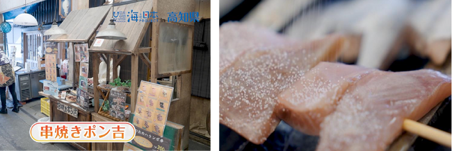 一般社団法人海と日本プロジェクト in 高知 は、海とカツオの一本釣りの町として知られる、高知県中土佐町の久礼大正町市場にある「串焼きポン吉」とコラボレーションし、カツオのハランボを藁焼き燻製にした「かつおの藁焼きハランボ串」を3月28日(木)より販売を開始いたしました。