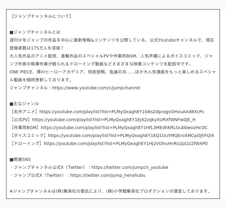 ・ジャンプチャンネル公式X(Twitter):https://twitter.com/jumpch_youtube