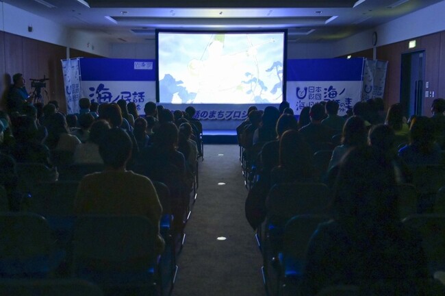 今回の上映会は、日本中に残された海にまつわる民話を発掘し、その民話のストーリーとそこに込められた「想い」「警鐘」「教訓」を、親しみやすいアニメーションとして映像化する「海ノ民話のまちプロジェクト」の一環です。全国各地に伝わる民話を元に今年度制作した「海ノ民話アニメーション」25作品を2部に分けて上映しました。