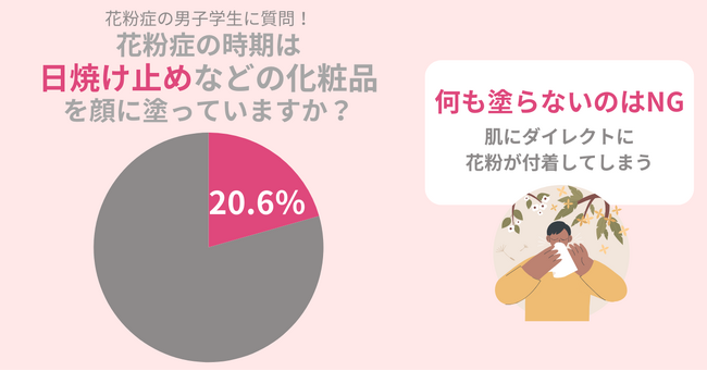花粉症の男子大学生に調査!この時期に日焼け止めなどを塗るのはたったの20.6%