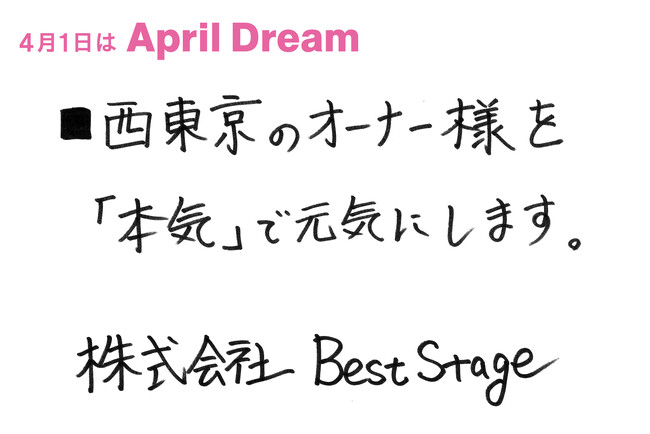 Best Stageは、オーナー様の不動産投資・不動産事業の成功を「本気」で応援します。このプレスリリースは、April Dreamに共感したBest Stageが今年、掲げている夢を配信します。