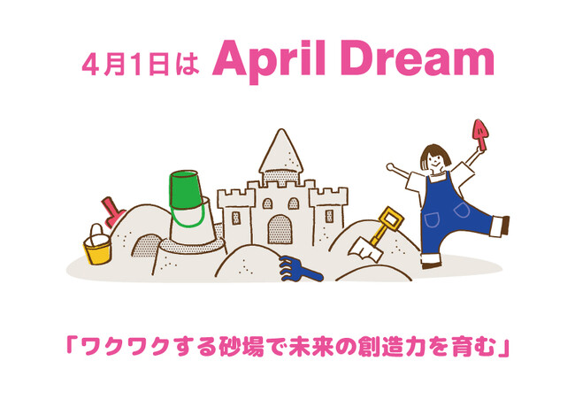 弊社は上記の理念に基づき、引き続き「ワクワクする砂場で未来の創造力を育む」という事を目指し事業をすすめて参ります。【「April Dream」は、4月1日に企業がやがて叶えたい夢を発信する、PR TIMESによるプロジェクトです。私たちはこの夢の実現を本気で目指しています。】