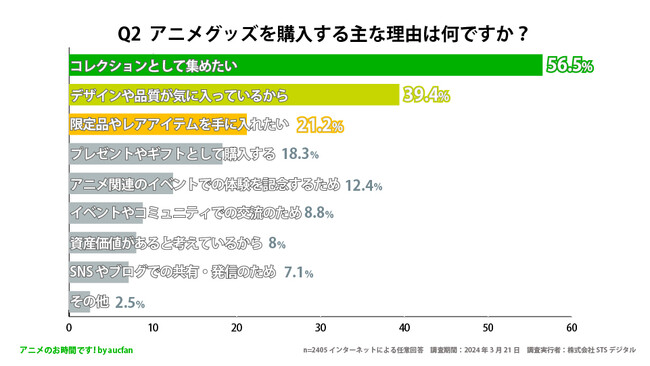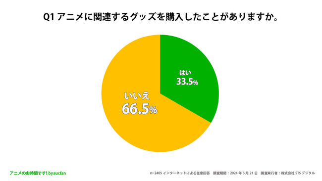 株式会社STSデジタルと株式会社オークファンが共同運営しているアニメのお時間です!(URL:https://aucfan.com/vod/)は、20歳~60歳以上の男女2405人を対象に「アニメグッズについてのアンケート調査」を実施しました。