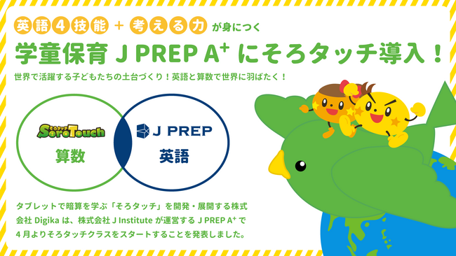 タブレットで暗算を学ぶ「そろタッチ」を開発・展開する株式会社Digika(本社:東京都千代田区 代表取締役社長:橋本恭伸)は、株式会社 J Institute(本社:東京都目黒区 代表取締役:斉藤 淳)が運営するJ PREPA⁺にそろタッチクラスを2024年4月より導入することを発表します。