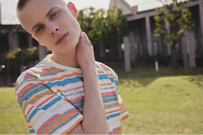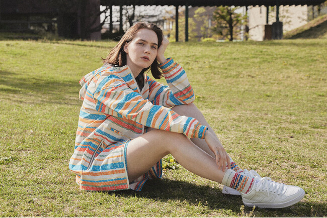 また、ジャケットにはジャガードニットテープでヒュンメルを象徴するシェブロンラインを配置。未来への広がりを意味するラインに、LGBTだけでなく、誰もが暮らしやすく、誰もが自分の人生の主人公になれる社会に近づけるように、という想いを込めました。