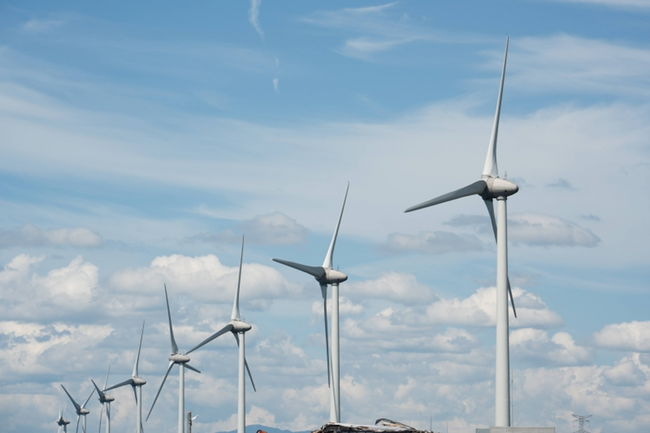 写真素材集1「風力発電所編」より、一列に立ち並ぶ風力発電所