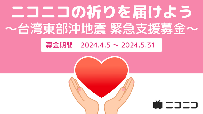 株式会社ドワンゴ(本社:東京都中央区、代表取締役社長:夏野剛)は、2024年4月3日(水)に発生した台湾東部沖地震への緊急支援を2024年4月5日(金)より開始します。