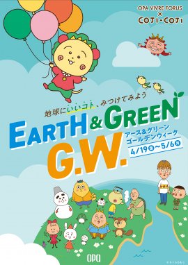 2024年4月19日(金)から5月6日(月)の期間、OPAのキャンペーン対象施設で「EARTH&GREEN G.W. 」を開催します。4月22日(月)のアースデーにちなみ、2024年のゴールデンウィークは地球や環境について考える機会とするため、地球や環境について学べるクイズラリーや環境に配慮したノベルティのプレゼントなどのイベントをご用意いたしました。「コジコジ」たちと一緒に地球や環境について考えましょう!