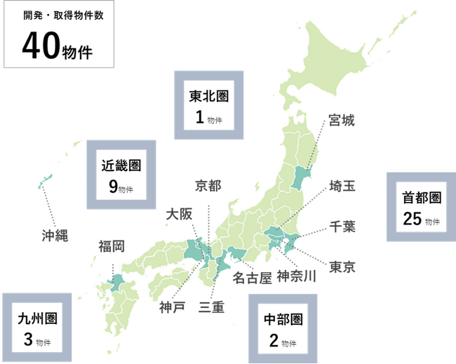 当社は2016年度より物流施設開発事業に参画し、取得・開発物件の総数は40物件となりました。(2024年3月現在)