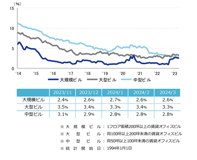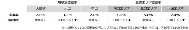 空室率 前月から小幅に低下 小口の面積帯ではテナント誘致が順調