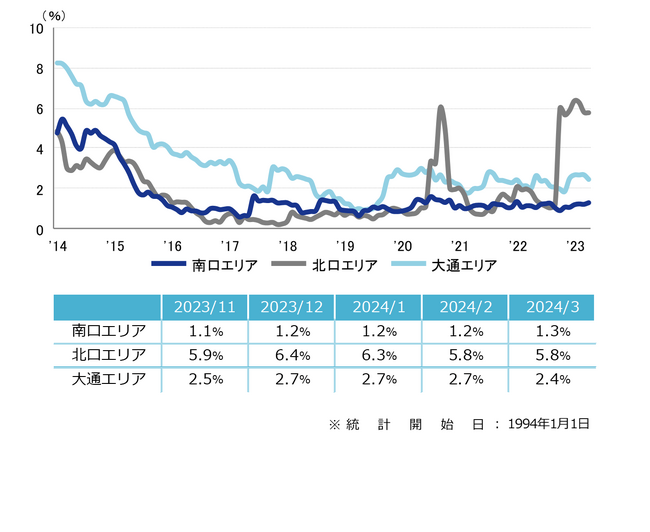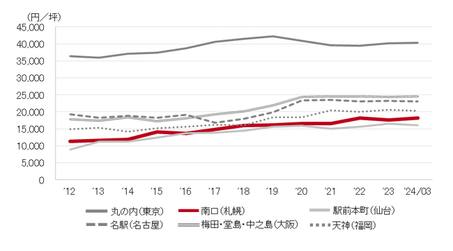 三幸エステート株式会社(本社:東京都中央区、取締役社長:武井重夫)は、2024年3月度の札幌市オフィス賃貸状況(空室率&現空面積:全規模、募集賃料&募集面積:全規模、規模別空室率、主要エリア※1空室率:全規模)および全国6大都市(東京・札幌・仙台・名古屋・大阪・福岡)の大規模ビルのマーケットデータをまとめた「オフィスマーケット2024年4月号札幌」を公表します。