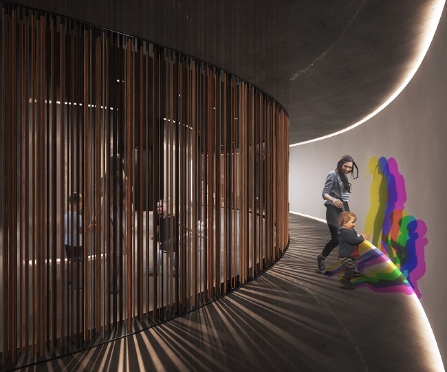 例1)展望層5フロアへ続く1階エントランスなど低層部:新しい“神戸ポートタワー体験”を予感させる演出を楽しめる空間構成を計画しています。