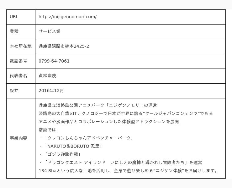 株式会社ニジゲンノモリ 概要