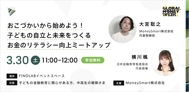 MoneySmart株式会社(本社:東京都大田区、代表取締役:大宮 聡之)が運営する子どもと家族のための金融教育サービス「Standify(スタンディファイ)」は、グローバルマネーウィーク※の期間中である2024年3月30日(土)にFINOLAB(東京・大手町)にて、子どもの金融教育に関心がある方、中高生の親御さまに向けた60分のスペシャルイベントを開催いたしました。