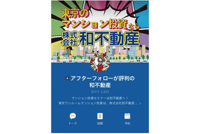 不動産投資コンサルティング事業を行う、アフターフォローが評判の株式会社和不動産(本社:東京都千代田区/代表取締役社長:仲宗根 和徳)は、アカウント開設から3年9ヶ月ほどが経った2024年4月6日に、公式LINEの累計友だち追加数が3,000人を突破しました。今以上に有益な情報を届け続けられるよう、今後もコンテンツアップデートに尽力して参ります。