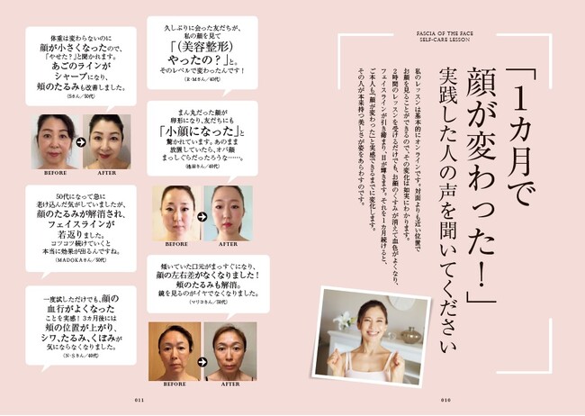 「本当に顔が変わった!」という体験者の声を多数収録。リアルなビフォー&アフターや実践方法を紹介し、「私でもできる!と励まされた」「心まで変わった」といった声も!