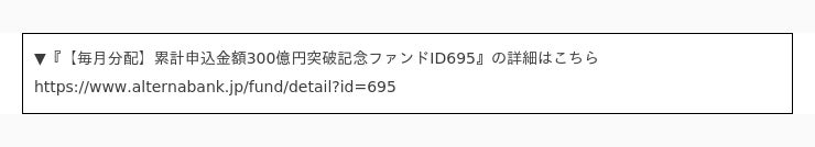 なお、累計申込金額300億円突破を記念しまして、4月16日 に『【毎月分配】累計申込金額300億円突破記念ファンドID695』の募集を予定しております。