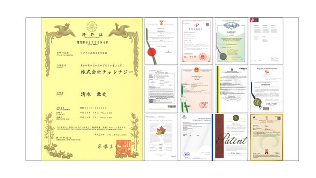 株式会社チャレナジー(本社:東京都墨田区、代表取締役:清水敦史、以下 当社)は、「マグナス式推力発生装置」(以下 本発明)について、23カ国で特許取得が完了したことをお知らせいたします。