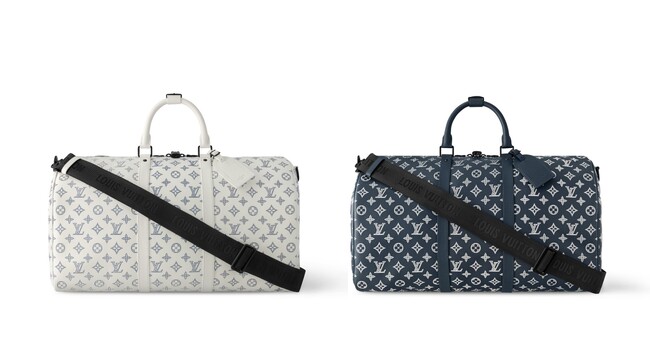 旅行鞄をスポーティな雰囲気で再解釈した「キーポル・バンドリエール 50」は、柔らかいカーフレザーにモノグラム・パターンをエンボスし、その上にコントラストカラーでモチーフをプリントしました。この工程がデザインに奥行きを添えています。客室に持ち込みできるサイズのアイテムです(但し、航空会社・機材によって客室持ち込み手荷物の条件は異なる場合があります)。
