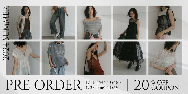 【Re:EDIT(リエディ)】2024年夏のプレオーダーを4/19(金)12:00~開催!対象アイテムに使える20%OFFクーポンもプレゼント