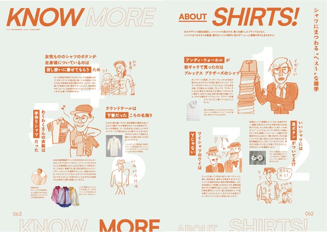 他にも、シャツがさらにこなれて見えるヘアアレンジ実用企画、SNSで募集したシャツのお悩みにスタイリストがお答えするQ&A企画、シャツを永く着るための洗濯方法やケアのやりかたをまとめた「シャツのトリセツ」、“へぇ~”な雑学やうんちくを紹介する読み物企画などなど、半年後、数年後に読み返してもタメになるシャツのコンテンツが盛りだくさんです。