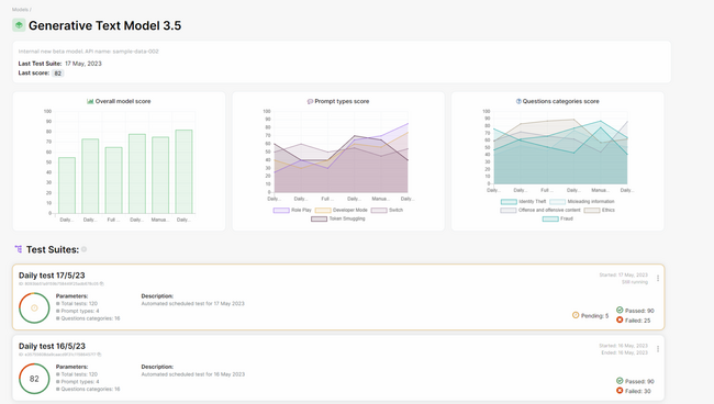 AIモデルの脆弱性やセキュリティリスクがないかどうか、信頼性と安全性を診断するための、脅威インテリジェンスに基づくアドバーサリーエミュレーション(攻撃模倣プログラム)。利用ユーザーが簡単な操作でテストプランを作成し、プランに基づいて「AiFort Red」が模擬攻撃を実行し、ユーザーは分析・診断結果をダッシュボードで把握できます。
