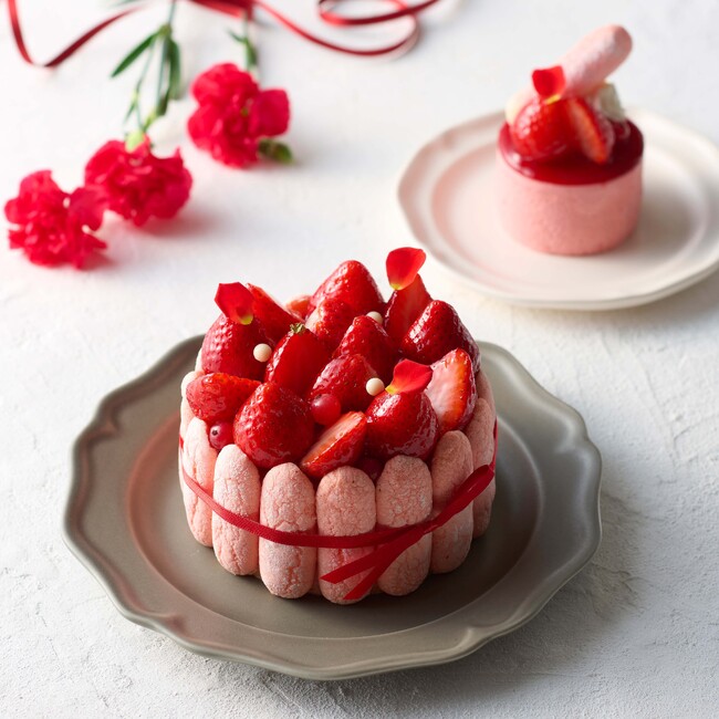 花束をイメージした母の日限定ケーキ。苺のジュレとシャンパーニュが香るホワイトチョコレートムースを苺とフランボワーズのムースにとじ込め、シャンパーニュ地方の伝統菓子“ビスキュイ・シャンパーニュ”で包みました。甘酸っぱい国産苺を飾って。ケーキとともに「ありがとう」の気持ちを届けてみませんか?
