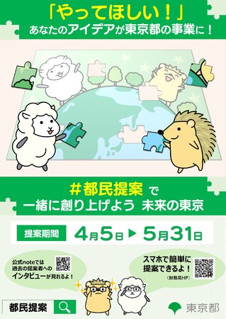 都では、従来の発想に捉われない新たな視点から都政の喫緊の課題を解決することを目的として、都民による事業提案制度(都民提案)を実施しています。